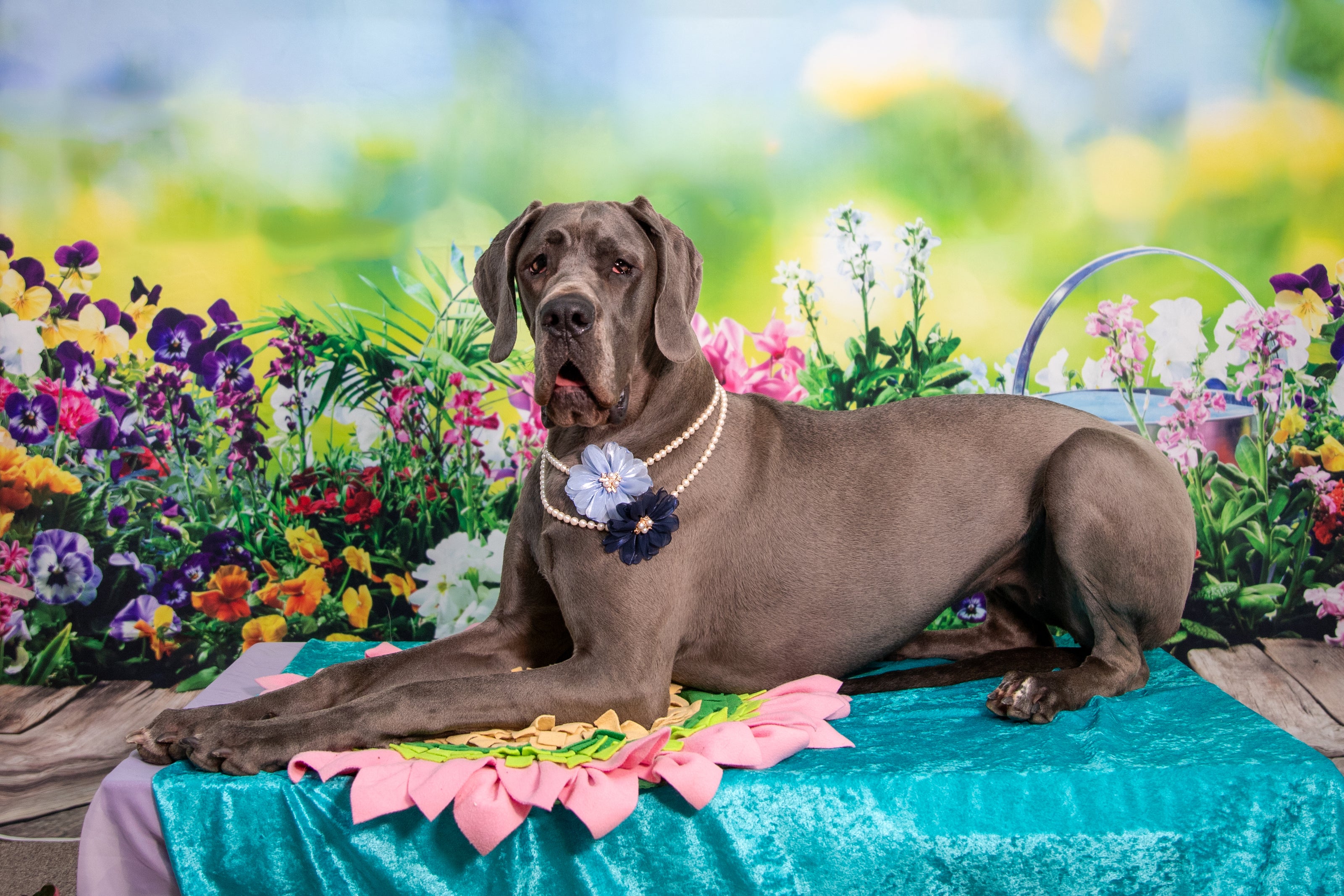 The big Dane on campus leading the pack with tail wags, love sniffles, and a drool-worthy amount of slobbers for all.